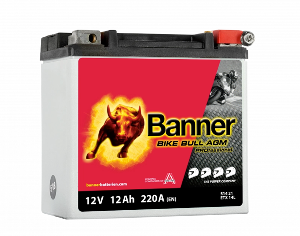 Banner Power für Motorräder, Motocross ATV/Quads, Jetskis und Rasentraktoren. Bike Bull AGM sind absolut wartungsfreie Markenbatterien mit modernster AGM-Technologie (AGM = Absorbent Glass Mat). Die Säure ist in einem Glasvlies aufgesaugt und somit auslaufsicher gebunden.